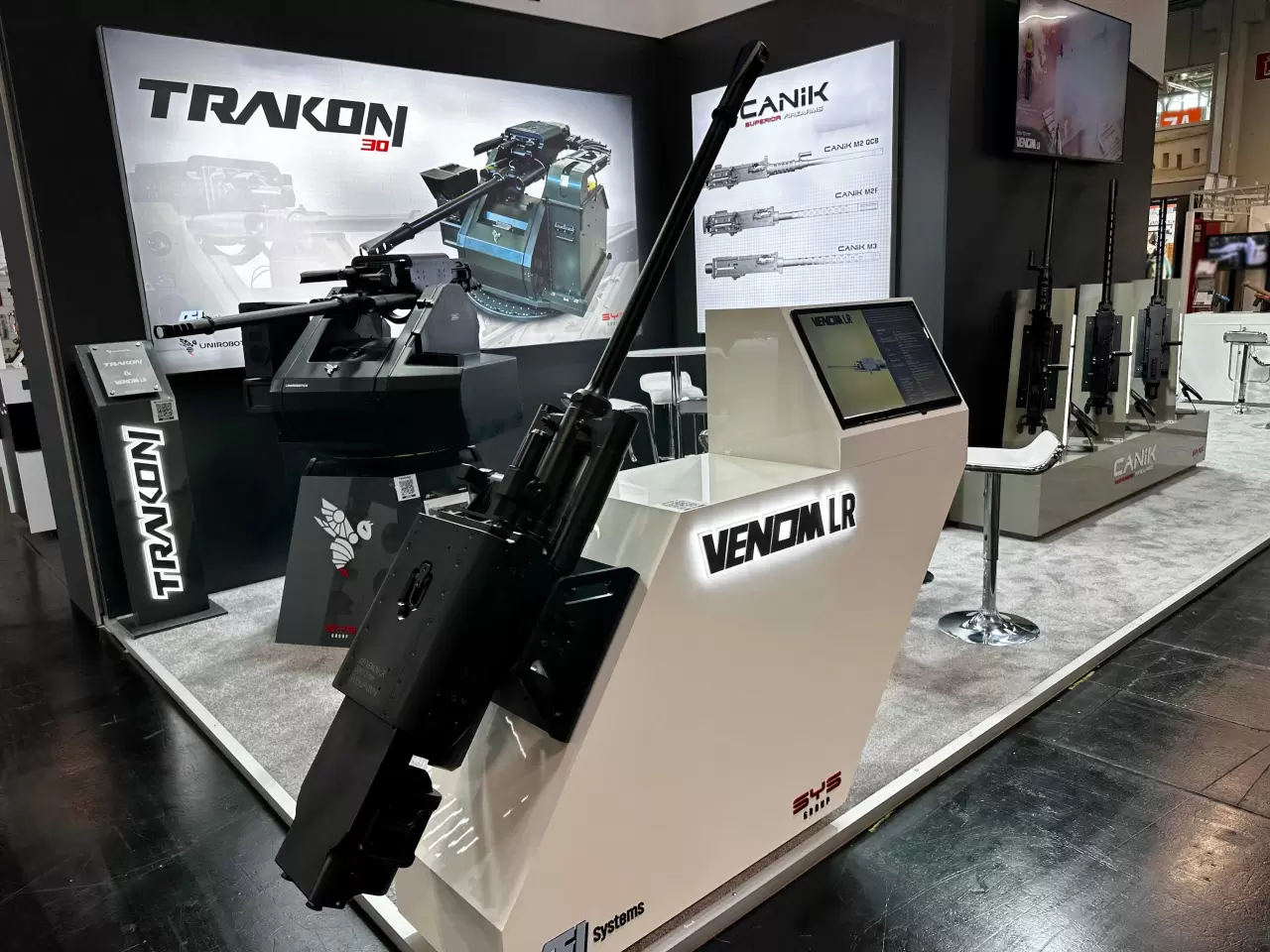 Son dönemde katıldığı tüm fuarlarda büyük ilgi gören TRAKON 30 Uzaktan Komutalı Silah Sistemi (UKSS) ve 30113 milimetre orta kalibre top VENOM LR entegrasyonu, ENFORCE TAC’te de en merak edilen çözümler arasında yer alıyor. Çok maksatlı(Multi Role) olarak en çok talep gören orta kalibre top olan VENOM LR fuarın en innovatif silahı olarak otoritelerden tam not aldı.
